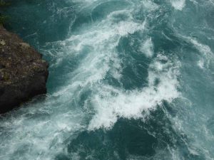 Mein Weg führt heute zu den Huka-Falls, ein beeindruckender Wasserfall im längsten Fluss Neuseelands, dem Waikato-River, der vom Lake Taupo abgeht. Er ist nur 10 m hoch, beeindruckt durch die Wassermassen, die in eine enge Schlucht stürzen.
