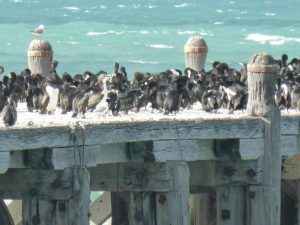 Ich setze mich eine Weile auf die Pier, beobachte mit viel Freude erst einen, bald zwei sich treiben lassende Seehunde und einen Seelöwen, den ich erst übersehe, dabei ist er gar nicht weit weg. Von einer Touristin wurde ich vor einigen Tagen gefragt, ob Seelöwen Pinguine fressen – nein, sie leben richtig friedlich nebeneinander her.