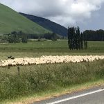 Was mir auch auffällt: bei meiner letzten Reise haben mit die Heerscharen an Schafen gefehlt, für die dieses Land doch so bekannt ist. Statt dessen gab es Unmengen an Rinderherden und die Mitteilung, dass NZ sehr, sehr weit unten in der Klimabilanz steht – wegen der Rinder. Entweder haben die Farmer ordentlich Zuschläge erhalten, um wieder auf Schafe „umzusatteln“ oder sie haben ihre Rinder versteckt und die Schafe wieder hervorgeholt. Es ist jedenfalls so, wie man sich die Südinsel vorstellt – riesige Schafweiden, Unmengen an Tieren, mal enger, mal mit viel Platz. Und heute können wir durch Zufall – und dank dessen, dass ich am Steuer saß, Bernd hätte sich nicht angehalten, beobachten, wie eine große Herde über die Strasse auf die andere Seite getrieben wurde, mit Hilfe von sieben Hunden. Ich bewundere es immer wieder, wie die Hunde sich „absprechen“ und ihre Positionen übernehmen, um die Herde dahin zu treiben, wo sie hin soll.